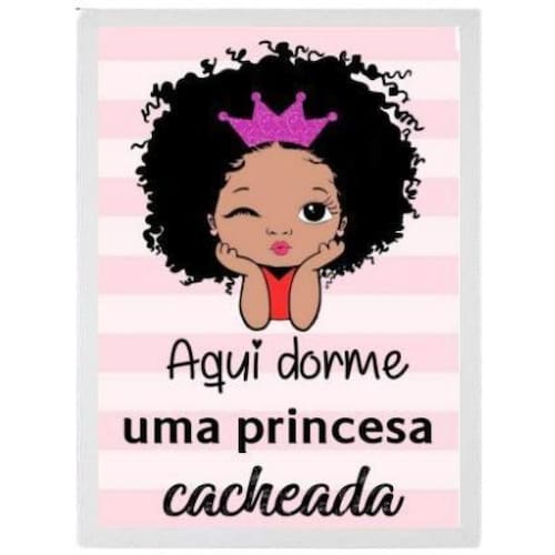 Quadro aqui dorme uma princesa cacheada 24x18cm Moldura: madeira branca