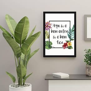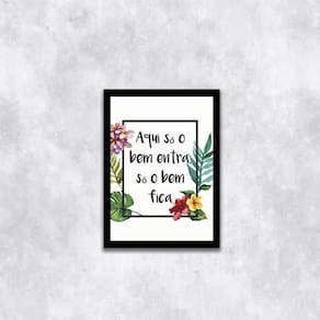 Quadro aqui só o bem entra, só o bem fica 24x18cm - com vidro Moldura: madeira preta Informações do produto tire todas as suas dúvidas no descritivo abaixo: decoração para quarto, sala, cozinha, escritório, área gourmet e muito mais. Chega de paredes vazias medidas - cada peça tem 24x18cm a5 . Material do papel - papel fotográfico brilhante de altíssima resolução acabamento - todos os quadros são acompanhados de vidro para proteção da imagem. - moldura em madeira maciça na cor preta e pendurador . - os quadros são embalados de forma segura com plástico bolha com camada dupla de acordo com o tamanho dos quadros. - de 3 meses. Meu quadro chegou. Como posso fixá-lo Você precisa apenas de um martelo e um prego, pois os quadros já vão acompanhados de penduradores. Esta é a forma mais indicada. Como posso limpar meu quadro A limpeza é feita como um móvel comum da sua casa. Apenas um pano seco ou espanador são suficientes para tal