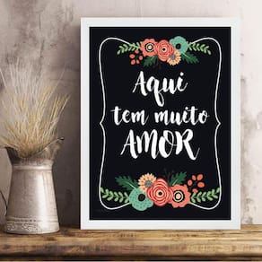Quadro aqui tem muito amor 24x18cm - com vidro Cor: moldura branca Informações do produto tire todas as suas dúvidas no descritivo abaixo: decoração para quarto, sala, cozinha, escritório, área gourmet e muito mais. Chega de paredes vazias medidas - cada peça tem 24x18cm a5 . Material do papel - papel fotográfico brilhante de altíssima resolução acabamento - todos os quadros são acompanhados de vidro para proteção da imagem. - moldura em madeira maciça na cor preta ou branca conforme produto escolhido e pendurador . - os quadros são embalados de forma segura com plástico bolha com camada dupla de acordo com o tamanho dos quadros. Garantia - garantia de 3 meses. Meu quadro chegou. Como posso fixá-lo Você precisa apenas de um martelo e um prego, pois os quadros já vão acompanhados de penduradores. Esta é a forma mais indicada. Como posso limpar meu quadro A limpeza é feita como um móvel comum da sua casa. Apenas um pano seco ou espanador são suficientes para tal