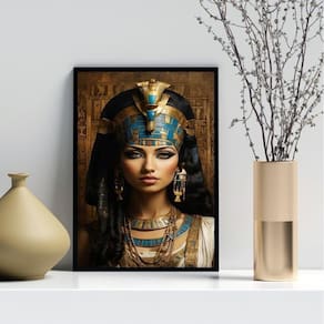 Quadro arquétipo cleópatra - face 24x18cm - com vidro Cor: moldura branca Informações do produto tire todas as suas dúvidas no descritivo abaixo: decoração para quarto, sala, cozinha, escritório, área gourmet e muito mais. Chega de paredes vazias medidas - cada peça tem 24x18cm a5 . Material do papel - papel fotográfico brilhante de altíssima resolução acabamento - todos os quadros são acompanhados de vidro para proteção da imagem. - moldura em madeira maciça na cor preta ou branca conforme produto escolhido e pendurador . - os quadros são embalados de forma segura com plástico bolha com camada dupla de acordo com o tamanho dos quadros. Garantia - garantia de 3 meses. Meu quadro chegou. Como posso fixá-lo Você precisa apenas de um martelo e um prego, pois os quadros já vão acompanhados de penduradores. Esta é a forma mais indicada. Como posso limpar meu quadro A limpeza é feita como um móvel comum da sua casa. Apenas um pano seco ou espanador são suficientes para tal