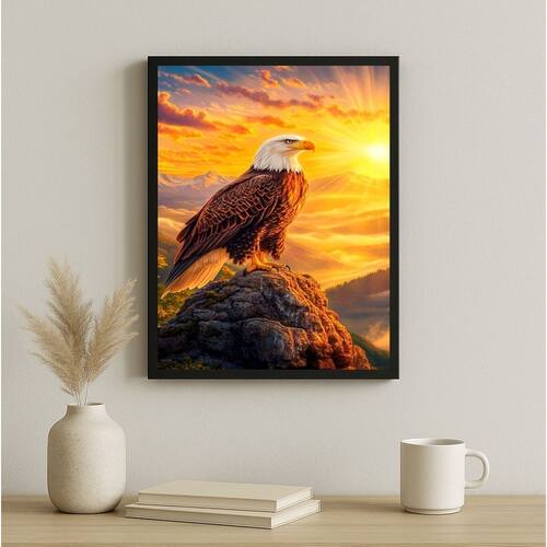 Quadro Arquétipo da Águia - Nascer do Sol 24x18cm - vidro - Cor: Moldura preta
