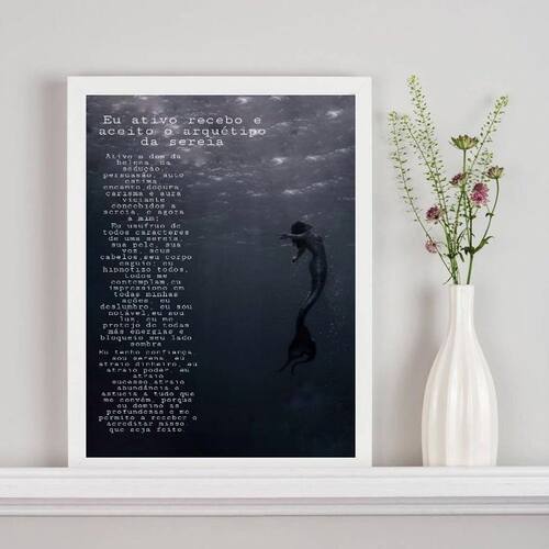 Quadro arquétipo da sereia- ativação 45x34cm - com vidro Moldura: madeira branca Informações do produto tire todas as suas dúvidas no descritivo abaixo: decoração para quarto, sala, cozinha, escritório, área gourmet e muito mais. Chega de paredes vazias medidas - cada peça tem 45x34cm a3 . Material do papel - papel fotográfico brilhante de altíssima resolução acabamento - todos os quadros são acompanhados de vidro para proteção da imagem. - moldura em madeira maciça na cor preta ou branca conforme produto escolhido e pendurador . - os quadros são embalados de forma segura com plástico bolha com camada dupla de acordo com o tamanho dos quadros. - de 3 meses. Meu quadro chegou. Como posso fixá-lo Você precisa apenas de um martelo e um prego, pois os quadros já vão acompanhados de penduradores. Esta é a forma mais indicada. Como posso limpar meu quadro A limpeza é feita como um móvel comum da sua casa. Apenas um pano seco ou espanador são suficientes para tal Marca: Não Informado