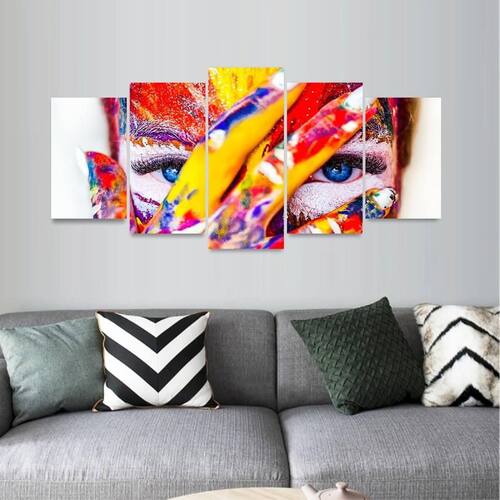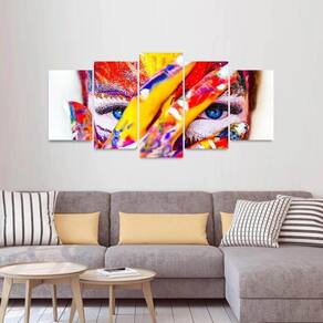 Especificações: Quadro decorativo Mosaico de 5 Peças: Tamanho total de 125x60 cm Comprimento x Altura 02 Peças menores de 25x40 cm cada 02 Peças Médias de 25x50 cm cada 01 Peça Central de 25x60 cm Espaçamento sugerido entre as peças - 1 á 2 cm Espessura do produto - 9 mm