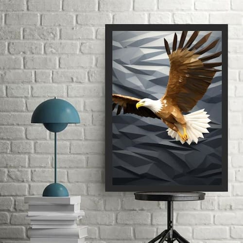 Quadro arte águia - abstrato geométrico 24x18cm Cor: moldura preta Informações do produto tire todas as suas dúvidas no descritivo abaixo: decoração para quarto, sala, cozinha, escritório, área gourmet e muito mais. Chega de paredes vazias medidas - cada peça tem 24x18cm a5 . Material do papel - papel fotográfico brilhante de altíssima resolução acabamento - todos os quadros são acompanhados de uma película de acetato para proteção da imagem. - os quadros são embalados de forma segura com plástico bolha com camada dupla de acordo com o tamanho dos quadros. Garantia - garantia de 3 meses. Meu quadro chegou. Como posso fixá-lo Você precisa apenas de um martelo e um prego, pois os quadros já vão acompanhados de penduradores. Esta é a forma mais indicada. Caso prefira, você pode utilizar uma fita dupla face neste caso, sugerimos de alta qualidade para evitar que descole e seu quadro caia . Como posso limpar meu quadro A limpeza é feita como um móvel comum da sua casa. Apenas um pano seco ou espanador são suficientes para tal