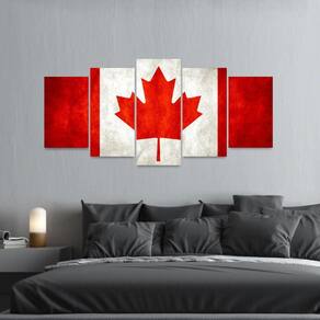 Quadro Arte Bandeira Canadá Mosaico 5 Peças