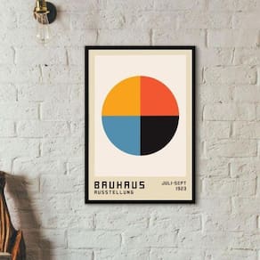 Quadro arte bauhaus - ausstellung 24x18cm - com vidro Moldura: madeira branca Informações do produto tire todas as suas dúvidas no descritivo abaixo: decoração para quarto, sala, cozinha, escritório, área gourmet e muito mais. Chega de paredes vazias medidas - cada peça tem 24x18cm a5 . Material do papel - papel fotográfico brilhante de altíssima resolução acabamento - todos os quadros são acompanhados de vidro para proteção da imagem. - moldura em madeira maciça na cor preta ou branca conforme produto escolhido e pendurador . - os quadros são embalados de forma segura com plástico bolha com camada dupla de acordo com o tamanho dos quadros. Garantia - garantia de 3 meses. Meu quadro chegou. Como posso fixá-lo Você precisa apenas de um martelo e um prego, pois os quadros já vão acompanhados de penduradores. Esta é a forma mais indicada. Como posso limpar meu quadro A limpeza é feita como um móvel comum da sua casa. Apenas um pano seco ou espanador são suficientes para tal
