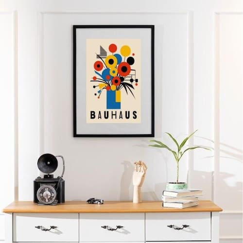 Quadro arte bauhaus flores - 60x48cm Cor: moldura branca Informações do produto tire todas as suas dúvidas no descritivo abaixo: decoração para quarto, sala, cozinha, escritório, área gourmet e muito mais. Chega de paredes vazias medidas - cada peça tem 60x48cm . Material do papel - papel fotográfico brilhante de altíssima resolução acabamento - todos os quadros são acompanhados de vidro para proteção da imagem. - moldura em madeira maciça na cor preta ou branca conforme produto escolhido e pendurador. - paspatur branco com 7cm de largura - os quadros são embalados de forma segura com plástico bolha com camada dupla de acordo com o tamanho dos quadros. Garantia - garantia de 3 meses. Meu quadro chegou. Como posso fixá-lo Você precisa apenas de um martelo e um prego, pois os quadros já vão acompanhados de penduradores. Esta é a forma mais indicada. Como posso limpar meu quadro A limpeza é feita como um móvel comum da sua casa. Apenas um pano seco ou espanador são suficientes para tal