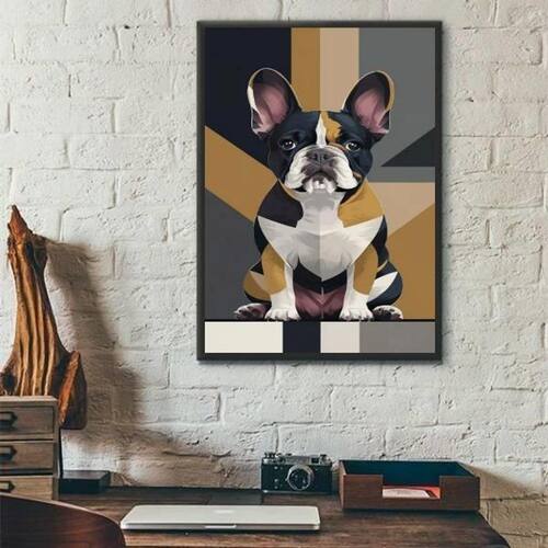 Quadro arte geométrica bulldog francês 33x24cm Cor: moldura branca Informações do produto tire todas as suas dúvidas no descritivo abaixo: decoração para quarto, sala, cozinha, escritório, área gourmet e muito mais. Chega de paredes vazias medidas - cada peça tem 33x24cm a4 . Material do papel - papel fotográfico brilhante de altíssima resolução acabamento - todos os quadros são acompanhados de uma película de acetato para proteção da imagem. - os quadros são embalados de forma segura com plástico bolha com camada dupla de acordo com o tamanho dos quadros. - de 3 meses. Meu quadro chegou. Como posso fixá-lo Você precisa apenas de um martelo e um prego, pois os quadros já vão acompanhados de penduradores. Esta é a forma mais indicada. Caso prefira, você pode utilizar uma fita dupla face neste caso, sugerimos de alta qualidade para evitar que descole e seu quadro caia . Como posso limpar meu quadro A limpeza é feita como um móvel comum da sua casa. Apenas um pano seco ou espanador são suficientes para tal