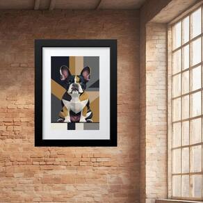 Quadro arte geométrica bulldog francês- 60x48cm Cor: moldura preta Informações do produto tire todas as suas dúvidas no descritivo abaixo: decoração para quarto, sala, cozinha, escritório, área gourmet e muito mais. Chega de paredes vazias medidas - cada peça tem 60x48cm . Material do papel - papel fotográfico brilhante de altíssima resolução acabamento - todos os quadros são acompanhados de vidro para proteção da imagem. - moldura em madeira maciça na cor preta ou branca conforme produto escolhido e pendurador. - paspatur branco com 7cm de largura - os quadros são embalados de forma segura com plástico bolha com camada dupla de acordo com o tamanho dos quadros. - de 3 meses. Meu quadro chegou. Como posso fixá-lo Você precisa apenas de um martelo e um prego, pois os quadros já vão acompanhados de penduradores. Esta é a forma mais indicada. Como posso limpar meu quadro A limpeza é feita como um móvel comum da sua casa. Apenas um pano seco ou espanador são suficientes para tal