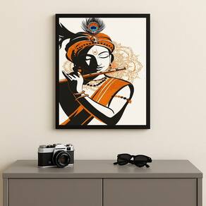 Quadro Arte Indiana - Flautista 24x18cm Mold Preta