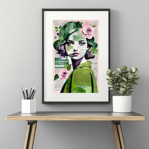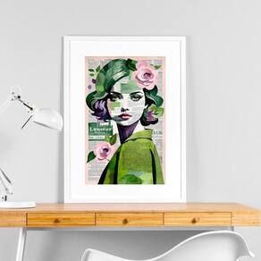Quadro arte menina mulher flores - 60x48cm