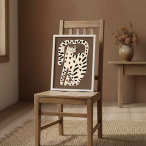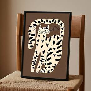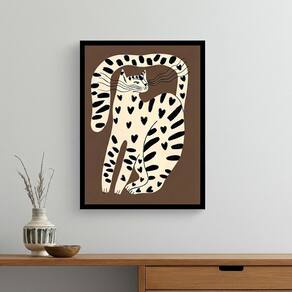 Quadro Arte Moderna Gato Marrom e Preto 33x24cm Mold Branca