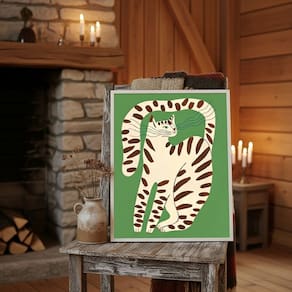 Quadro Arte Moderna Gato Verde e Marrom 33x24cm Mold Branca Vidro