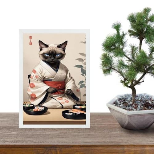 Quadro arte oriental sushi cat 24x18cm - com vidro Cor: moldura branca Informações do produto tire todas as suas dúvidas no descritivo abaixo: decoração para quarto, sala, cozinha, escritório, área gourmet e muito mais. Chega de paredes vazias medidas - cada peça tem 24x18cm a5 . Material do papel - papel fotográfico brilhante de altíssima resolução acabamento - todos os quadros são acompanhados de vidro para proteção da imagem. - moldura em madeira maciça na cor preta ou branca conforme produto escolhido e pendurador . - os quadros são embalados de forma segura com plástico bolha com camada dupla de acordo com o tamanho dos quadros. - de 3 meses. Meu quadro chegou. Como posso fixá-lo Você precisa apenas de um martelo e um prego, pois os quadros já vão acompanhados de penduradores. Esta é a forma mais indicada. Como posso limpar meu quadro A limpeza é feita como um móvel comum da sua casa. Apenas um pano seco ou espanador são suficientes para tal Marca: Não Informado Ean: 7891704024378