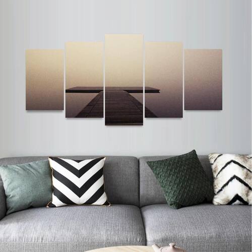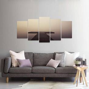 Especificações: Quadro decorativo Mosaico de 5 Peças: Tamanho total de 125x60 cm Comprimento x Altura 02 Peças menores de 25x40 cm cada 02 Peças Médias de 25x50 cm cada 01 Peça Central de 25x60 cm Espaçamento sugerido entre as peças - 1 á 2 cm Espessura do produto - 9 mm