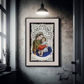Quadro arte sacra maria e menino jesus - 60x48cm Moldura: madeira preta Informações do produto tire todas as suas dúvidas no descritivo abaixo: decoração para quarto, sala, cozinha, escritório, área gourmet e muito mais. Chega de paredes vazias medidas - cada peça tem 60x48cm . Material do papel - papel fotográfico brilhante de altíssima resolução acabamento - todos os quadros são acompanhados de vidro para proteção da imagem. - moldura em madeira maciça na cor preta ou branca conforme produto escolhido e pendurador. - paspatur branco com 7cm de largura - os quadros são embalados de forma segura com plástico bolha com camada dupla de acordo com o tamanho dos quadros. - de 3 meses. Meu quadro chegou. Como posso fixá-lo Você precisa apenas de um martelo e um prego, pois os quadros já vão acompanhados de penduradores. Esta é a forma mais indicada. Como posso limpar meu quadro A limpeza é feita como um móvel comum da sua casa. Apenas um pano seco ou espanador são suficientes para tal Marca: Não Informado