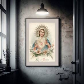 Quadro arte sacra sagrado coração de maria vintage - 60x48cm Moldura: madeira branca Informações do produto tire todas as suas dúvidas no descritivo abaixo: decoração para quarto, sala, cozinha, escritório, área gourmet e muito mais. Chega de paredes vazias medidas - cada peça tem 60x48cm . Material do papel - papel fotográfico brilhante de altíssima resolução acabamento - todos os quadros são acompanhados de vidro para proteção da imagem. - moldura em madeira maciça na cor preta ou branca conforme produto escolhido e pendurador. - paspatur branco com 7cm de largura - os quadros são embalados de forma segura com plástico bolha com camada dupla de acordo com o tamanho dos quadros. Garantia - garantia de 3 meses. Meu quadro chegou. Como posso fixá-lo Você precisa apenas de um martelo e um prego, pois os quadros já vão acompanhados de penduradores. Esta é a forma mais indicada. Como posso limpar meu quadro A limpeza é feita como um móvel comum da sua casa. Apenas um pano seco ou espanador são suficientes para tal Ean: 7893446885033