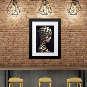 Quadro arte surrealista mulher - 60x48cm Cor: moldura preta Informações do produto tire todas as suas dúvidas no descritivo abaixo: decoração para quarto, sala, cozinha, escritório, área gourmet e muito mais. Chega de paredes vazias medidas - cada peça tem 60x48cm . Material do papel - papel fotográfico brilhante de altíssima resolução acabamento - todos os quadros são acompanhados de vidro para proteção da imagem. - moldura em madeira maciça na cor preta ou branca conforme produto escolhido e pendurador. - paspatur branco com 7cm de largura - os quadros são embalados de forma segura com plástico bolha com camada dupla de acordo com o tamanho dos quadros. - de 3 meses. Meu quadro chegou. Como posso fixá-lo Você precisa apenas de um martelo e um prego, pois os quadros já vão acompanhados de penduradores. Esta é a forma mais indicada. Como posso limpar meu quadro A limpeza é feita como um móvel comum da sua casa. Apenas um pano seco ou espanador são suficientes para tal