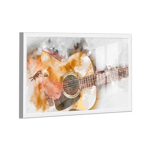 Quadro Arte Violão Aquarela -- BR ARTES Moldura Branca e Vidro - Ultra Grande 150x100 -