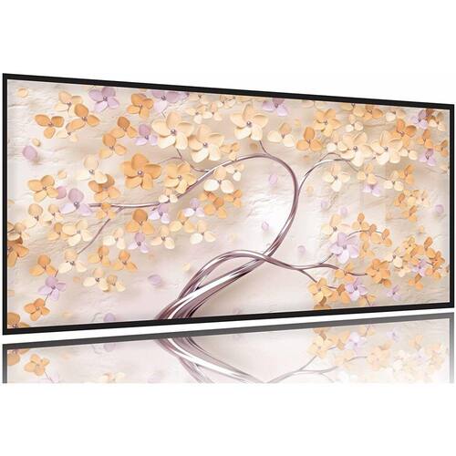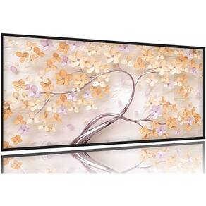 Quadro Árvore Flores Cerejeira Tons De Amarelo E Laranja 130x60 Moldura Preta 2x2