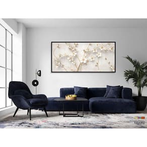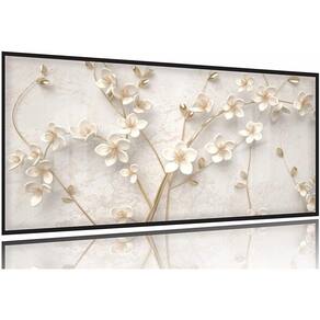 Quadro Árvore Flores Cerejeiras Brancas Para Sala Quarto 130x60 Moldura Preta 2x2