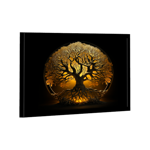 Quadro Árvore Raízes Gold -- BR ARTES Moldura Preta - Médio 84x54 -