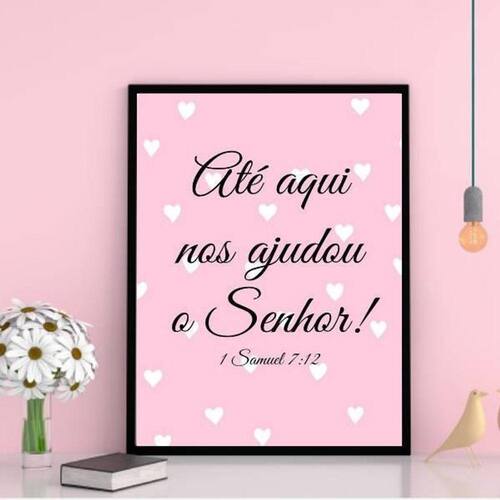 Quadro até aqui nos ajudou o senhor 45x34cm - com vidro Moldura: madeira preta Informações do produtoDecoração para quarto, sala, cozinha, escritório, área gourmet e muito mais. Chega de paredes vazias:medidas - cada peça tem 45x34cm a3 . Material do papel - papel fotográfico brilhante de altíssima resolução acabamento - todos os quadros são acompanhados de vidro para proteção da imagem. - moldura em madeira maciça na cor preta e pendurador. - os quadros são embalados de forma segura com plástico bolha com camada dupla de acordo com o tamanho dos quadros. Garantia - garantia de 3 meses. Meu quadro chegou. Como posso fixá-lo Você precisa apenas de um martelo e um prego, pois os quadros já vão acompanhados de penduradores. Esta é a forma mais indicada. Como posso limpar meu quadro A limpeza é feita como um móvel comum da sua casa. Apenas um pano seco ou espanador são suficientes para tal