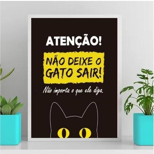 Quadro atenção não deixe o gato sair 45x34cm - com vidro Moldura: madeira branca Informações do produto Decoração para quarto, sala, cozinha, escritório, área gourmet e muito mais. Chega de paredes vazias Medidas - cada peça tem 45x34cm a3 . Material do papel - papel fotográfico brilhante de altíssima resolução Acabamento - todos os quadros são acompanhados de vidro para proteção da imagem. - moldura em madeira maciça e pendurador. - os quadros são embalados de forma segura com plástico bolha com camada dupla de acordo com o tamanho dos quadros. - de 3 meses. Meu quadro chegou. Como posso fixá-lo Você precisa apenas de um martelo e um prego, pois os quadros já vão acompanhados de penduradores. Esta é a forma mais indicada. Como posso limpar meu quadro A limpeza é feita como um móvel comum da sua casa. Apenas um pano seco ou espanador são suficientes para tal Marca: Não Informado