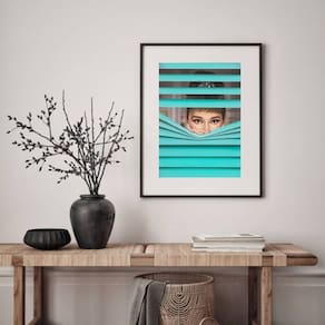 Quadro Audrey Hepburn - Persiana - 60x48cm - Moldura: Madeira branca