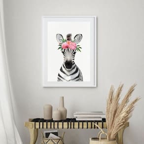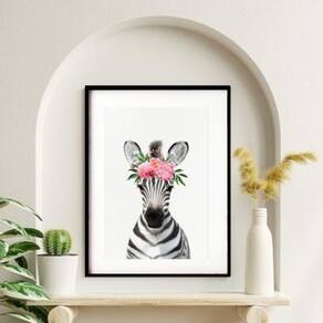 Quadro Baby Zebra Floral - 60X48Cm
