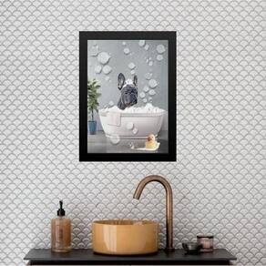 Quadro banheiro bulldog francês aquarela 45x34cm - com vidro