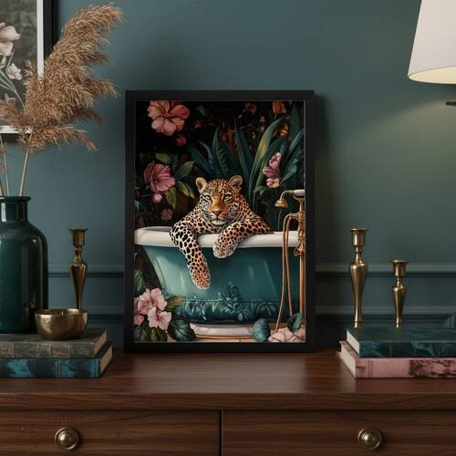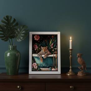Quadro Banheiro Chique Leopardo Luxo 45x34cm Mold Branca