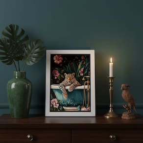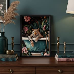 Quadro Banheiro Chique Leopardo Luxo 45x34cm Mold Preta