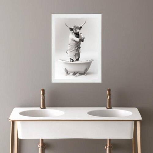 Quadro banheiro coleção animais - boi 33x24cm - com vidro