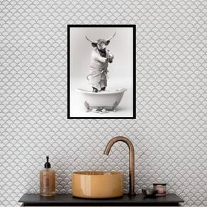 Quadro Banheiro Coleção Animais - Boi 33X24Cm - Com Vidro