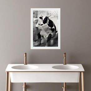 Quadro banheiro coleção animais - vaca 24x18cm - com vidro Moldura: madeira preta Informações do produto tire todas as suas dúvidas no descritivo abaixo: decoração para quarto, sala, cozinha, escritório, área gourmet e muito mais. Chega de paredes vazias medidas - cada peça tem 24x18cm a5 . Material do papel - papel fotográfico brilhante de altíssima resolução acabamento - todos os quadros são acompanhados de vidro para proteção da imagem. - moldura em madeira maciça na cor preta ou branca conforme produto escolhido e pendurador . - os quadros são embalados de forma segura com plástico bolha com camada dupla de acordo com o tamanho dos quadros. Garantia - garantia de 3 meses. Meu quadro chegou. Como posso fixá-lo Você precisa apenas de um martelo e um prego, pois os quadros já vão acompanhados de penduradores. Esta é a forma mais indicada. Como posso limpar meu quadro A limpeza é feita como um móvel comum da sua casa. Apenas um pano seco ou espanador são suficientes para tal