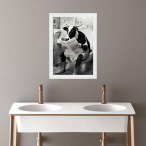 Quadro banheiro coleção animais - vaca 33x24cm - com vidro