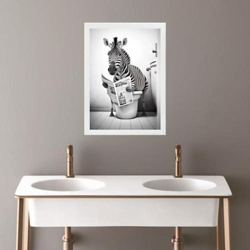 Quadro banheiro coleção animais - zebra 24x18cm Moldura: madeira branca Informações do produto tire todas as suas dúvidas no descritivo abaixo: decoração para quarto, sala, cozinha, escritório, área gourmet e muito mais. Chega de paredes vazias medidas - cada peça tem 24x18cm a5 . Material do papel - papel fotográfico brilhante de altíssima resolução acabamento - todos os quadros são acompanhados de uma película de acetato para proteção da imagem. - os quadros são embalados de forma segura com plástico bolha com camada dupla de acordo com o tamanho dos quadros. Garantia - garantia de 3 meses. Meu quadro chegou. Como posso fixá-lo Você precisa apenas de um martelo e um prego, pois os quadros já vão acompanhados de penduradores. Esta é a forma mais indicada. Caso prefira, você pode utilizar uma fita dupla face neste caso, sugerimos de alta qualidade para evitar que descole e seu quadro caia . Como posso limpar meu quadro A limpeza é feita como um móvel comum da sua casa. Apenas um pano seco ou espanador são suficientes para tal