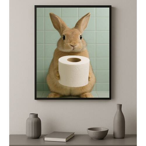Quadro Banheiro Fotografia Coelhinho 33x24cm - Cor: Moldura preta