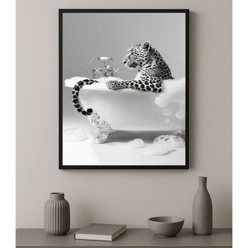 Quadro Banheiro Fotografia Onça Na Banheira 33x24cm - com vidro - Cor: Moldura branca