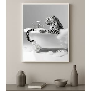 Quadro Banheiro Fotografia Onça Na Banheira 33x24cm - Cor: Moldura branca