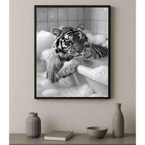 Quadro Banheiro Fotografia Tigre Na Banheira 45x34cm - com vidro - Cor: Moldura branca