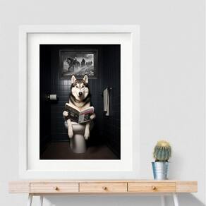Quadro banheiro husky siberiano - 60x48cm Moldura: madeira branca Informações do produto tire todas as suas dúvidas no descritivo abaixo: decoração para quarto, sala, cozinha, escritório, área gourmet e muito mais. Chega de paredes vazias medidas - cada peça tem 60x48cm . Material do papel - papel fotográfico brilhante de altíssima resolução acabamento - todos os quadros são acompanhados de vidro para proteção da imagem. - moldura em madeira maciça na cor preta ou branca conforme produto escolhido e pendurador. - paspatur branco com 7cm de largura - os quadros são embalados de forma segura com plástico bolha com camada dupla de acordo com o tamanho dos quadros. Garantia - garantia de 3 meses. Meu quadro chegou. Como posso fixá-lo Você precisa apenas de um martelo e um prego, pois os quadros já vão acompanhados de penduradores. Esta é a forma mais indicada. Como posso limpar meu quadro A limpeza é feita como um móvel comum da sua casa. Apenas um pano seco ou espanador são suficientes para tal