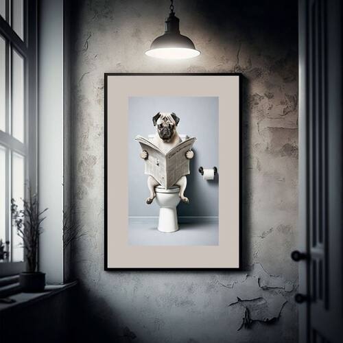 Quadro Banheiro Pug - 60x48cm - Cor: Moldura Preta