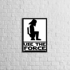 Quadro banheiro use the force 24x18cm - com vidro Moldura: madeira preta Informações do produto tire todas as suas dúvidas no descritivo abaixo: decoração para quarto, sala, cozinha, escritório, área gourmet e muito mais. Chega de paredes vazias medidas - cada peça tem 24x18cm a5 . Material do papel - papel fotográfico brilhante de altíssima resolução acabamento - todos os quadros são acompanhados de vidro para proteção da imagem. - moldura em madeira maciça na cor preta e pendurador . - os quadros são embalados de forma segura com plástico bolha com camada dupla de acordo com o tamanho dos quadros. Garantia - garantia de 3 meses. Meu quadro chegou. Como posso fixá-lo Você precisa apenas de um martelo e um prego, pois os quadros já vão acompanhados de penduradores. Esta é a forma mais indicada. Como posso limpar meu quadro A limpeza é feita como um móvel comum da sua casa. Apenas um pano seco ou espanador são suficientes para tal