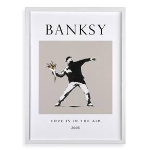 Quadro Banksy Love Is In The Air 45X34Cm - Com Vidro