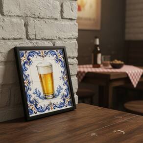 Quadro Bar Boteco Copo Cerveja 33x33cm Mold Branca