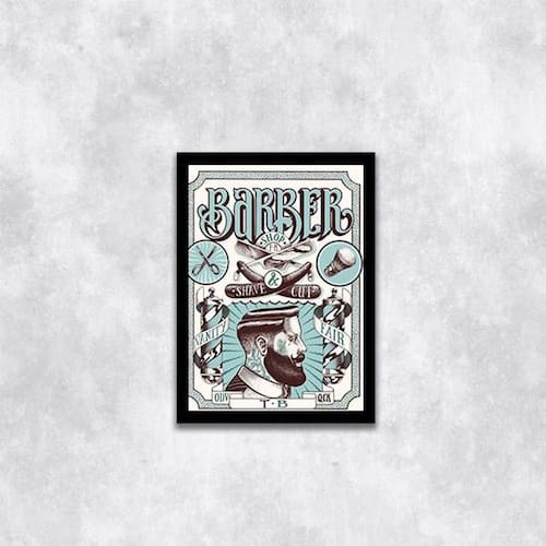 Quadro Barber Shop Vintage Style 24x18cm - Cor: Moldura preta e branca