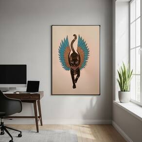 Quadro Bastet (ou Bast) Deusa Egípcia dos Gatos - 70x50cm - Cor: Moldura Branca