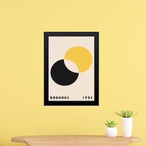 Quadro bauhaus amarelo e preto - eclipse 24x18cm Cor: moldura branca Informações do produto tire todas as suas dúvidas no descritivo abaixo: decoração para quarto, sala, cozinha, escritório, área gourmet e muito mais. Chega de paredes vazias medidas - cada peça tem 24x18cm a5 . Material do papel - papel fotográfico brilhante de altíssima resolução acabamento - todos os quadros são acompanhados de uma película de acetato para proteção da imagem. - os quadros são embalados de forma segura com plástico bolha com camada dupla de acordo com o tamanho dos quadros. - de 3 meses. Meu quadro chegou. Como posso fixá-lo Você precisa apenas de um martelo e um prego, pois os quadros já vão acompanhados de penduradores. Esta é a forma mais indicada. Caso prefira, você pode utilizar uma fita dupla face neste caso, sugerimos de alta qualidade para evitar que descole e seu quadro caia . Como posso limpar meu quadro A limpeza é feita como um móvel comum da sua casa. Apenas um pano seco ou espanador são suficientes para tal